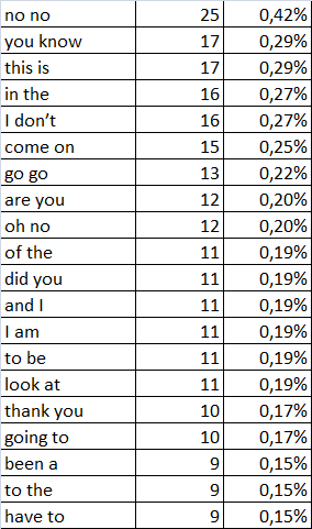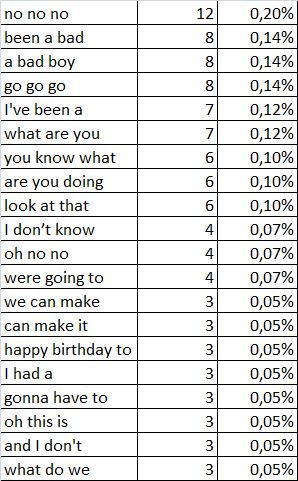 | gonna | 25 | 45 |